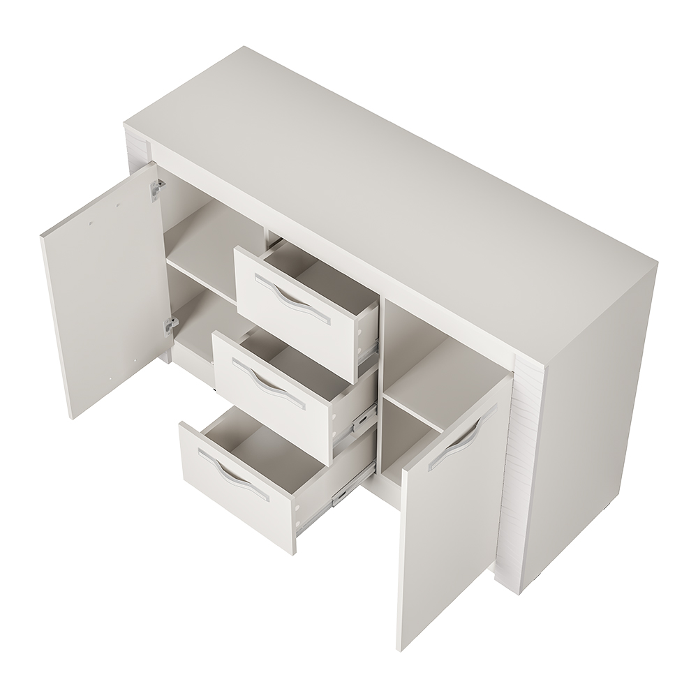 Вместительный комод "Монако" выполнен в сдержанном и элегантном стиле, как и все модели из одноименной мебельной коллекции. Изделие изготовлено в светлом цвете "кашемир" из качественной ЛДСП и имеет декоративные вставки из МДФ. Расположить все необходимые вещи можно в трех выдвижных ящиках либо на полках за распашными створками.
