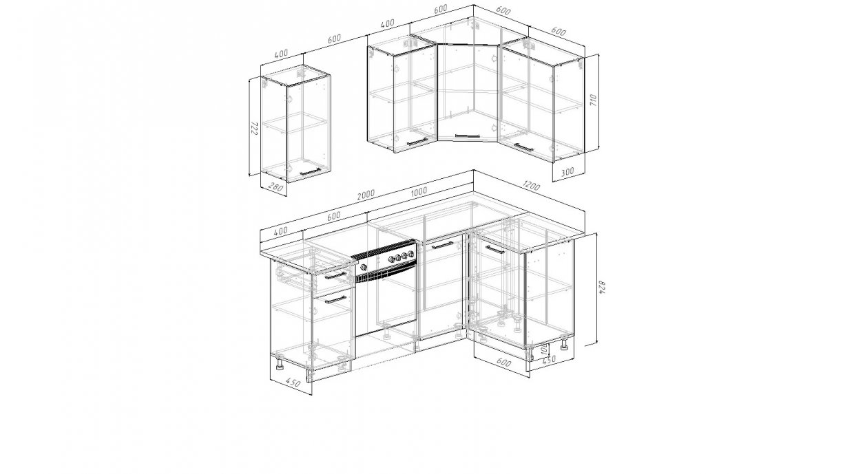 Кухонный гарнитур угловой Фьюжн 2000*1200 мм (Sanvut) в Среднеуральске