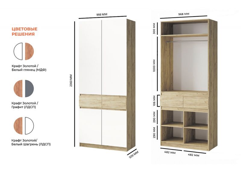Артикул: A59250Шкаф 2000 мм Турин ЛДСП крафт/белый шагрень (ВВР)