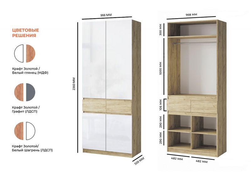 Артикул: A59251Шкаф 2000 мм Турин МДФ крафт/белый глянец (ВВР)