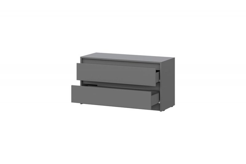 Лицевая фурнитура на тумбе отсутствует. Ящики открываются с помощью захвата рукой.
