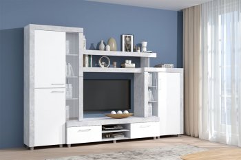 Артикул: A58949Гостиная Эго модульная (на ножках) Бетон светлый/Белый глянец